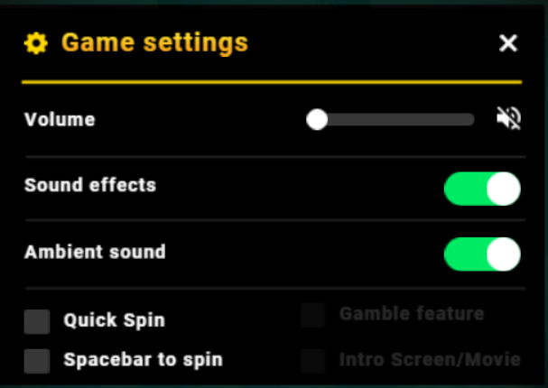 - Space bar to spin: By checking this option, the space bar can be used to trigger a spin. This option stays disabled if the intro video is not available for a game.