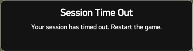 If a session times out, a "session timeout" message will be displayed to the player and the game will stay in an "unavailable" state until the player reloads the game.