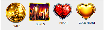 - WILD is wild for all symbols except BONUS, HEART, and GOLD HEART.